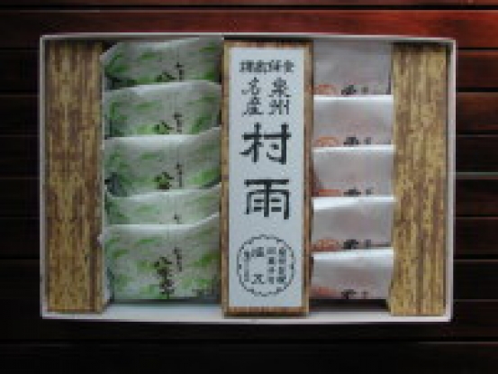 口当たりが良く、もちもち感があって甘さ控えめな小豆の蒸し菓子「村雨」が有名な和菓子店。村雨とは、ぽろぽろとはかなくくずれる様から、和泉八景の一つ「貝浦の村雨」にちなんで付けられた由緒ある和菓子です。
