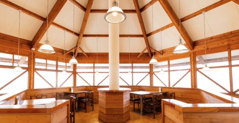 まほーばの森管理棟に併設されているこちらのカフェは360°ガラス張りで森や外の景色を楽しみながら休憩できるカフェです。カラフルなソーダフロートがお子様や若い世代に人気となっています!平日は主にドリンクとソフトクリームの販売ですが、土日はカレーやうどんなどの軽食も販売していますので是非ご利用ください!